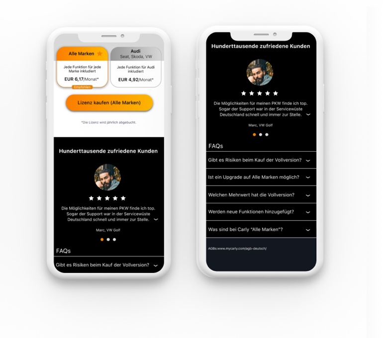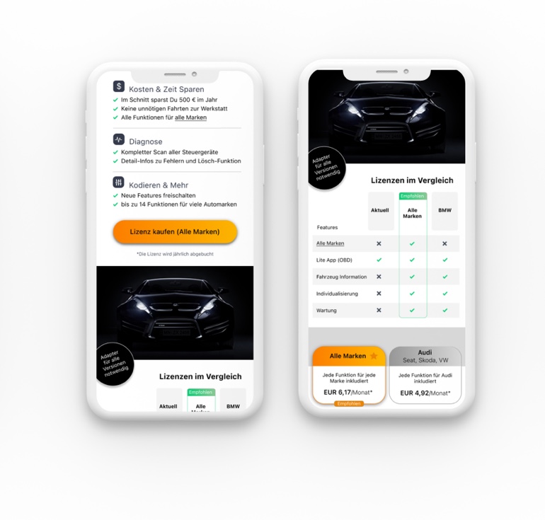 Different aspects (like putting the sale of the app first, including further explanations about the combination of the app and adapter or showing the price per month and per year when buying) will be iterated and tested again to see if the conversion rate can be improved further.